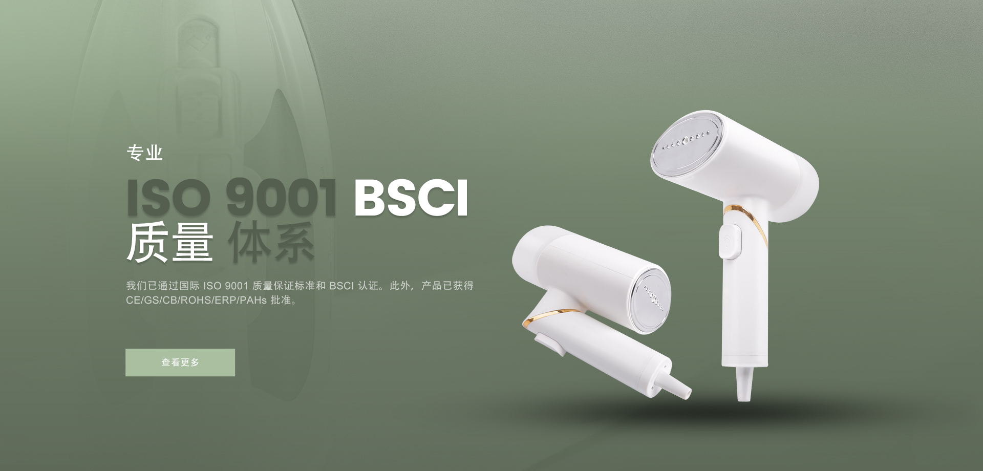 我們是一家專業的制造商和出口商,提供設計、開發、生產、銷售和相關服務,產品包括電熨斗、手持式蒸汽掛燙機、蒸汽刷等。 美威工廠占地4000平方米,擁有雄厚的技術力量和先進的設備,可以滿足您對生產能力和質量的各個方面的要求,目前已通過國際 ISO 9001 質量保證標準和 BSCI 認證。此外,產品獲得 CE/GS/CB/ROHS/ERP/PAHs 批準,并遠銷歐洲、中東、俄羅斯、亞洲和南美等。